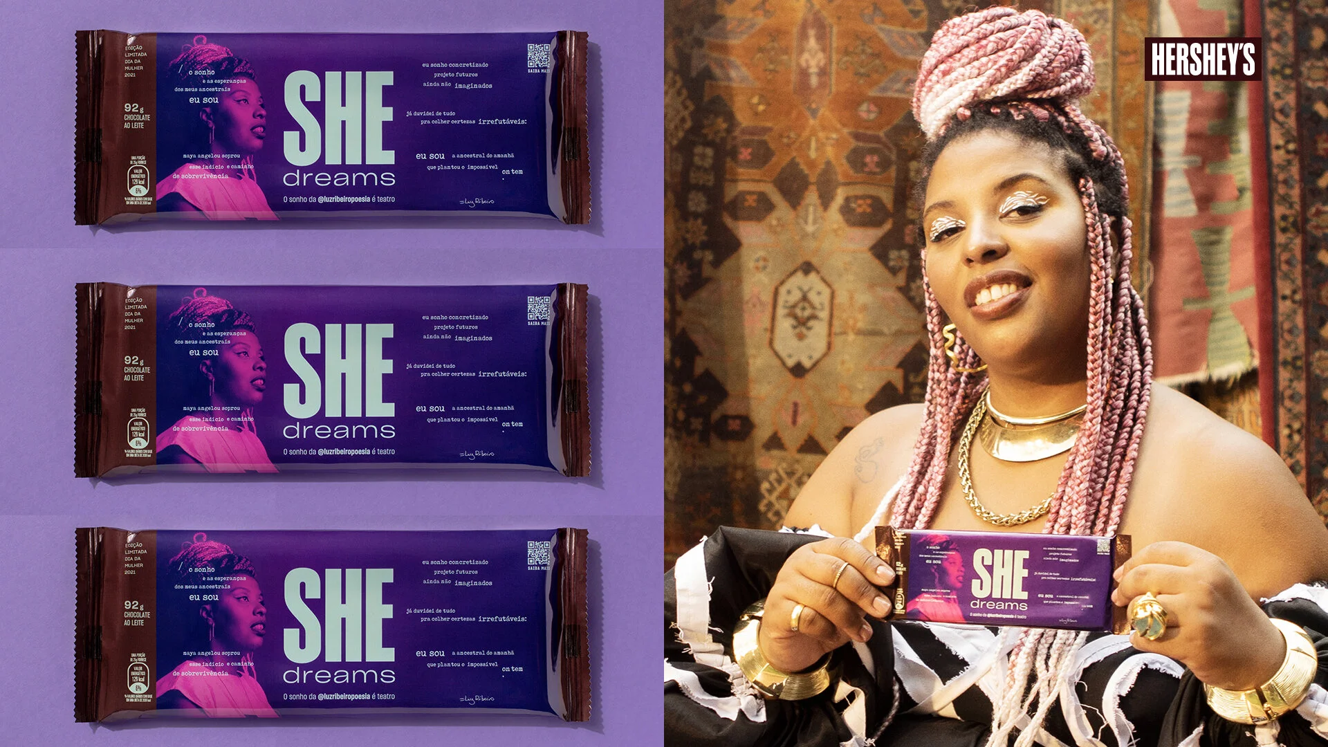 No ano passado reparamos que no nome HERSHEY'S estão os pronomes 'Her' e 'She' e criamos a plataforma #HERSHE, de apoio à mulheres artistas. Em 2021, o projeto voltou mais forte e a gente fala sobre sonho.